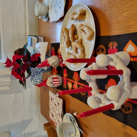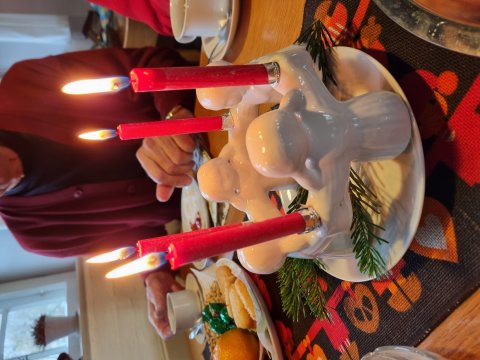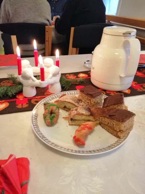 Camilla organist spillede til vore dejlige advents- og julesange, Alma læste historien om julerosen ( Selma Lagerlöf ) , julekløben og klejner blev nydt og der blev flettet både sang og stjerner, inden vi ønskede hinanden en glædelig december og på gensyn i det nye år.