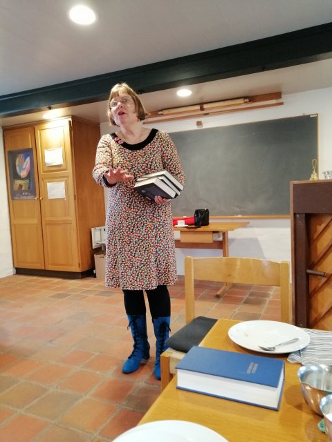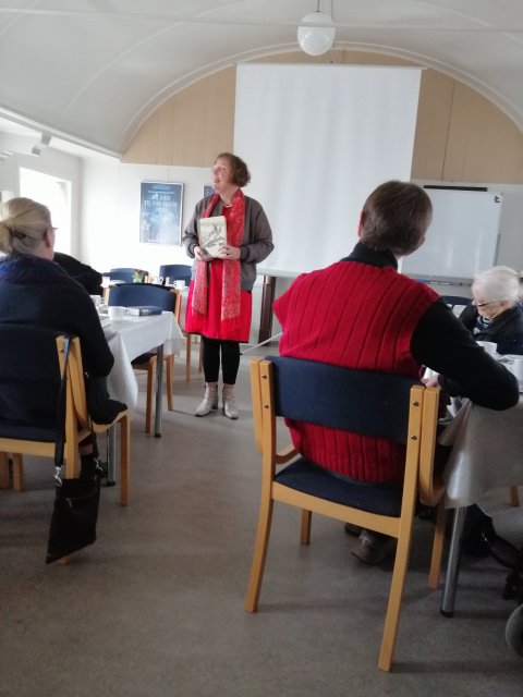 29. oktober havde vi besøg af vikarierende præst Helene Dam fra Ribe. Hun fortalte om sin opvækst/liv som operasanger og præst.