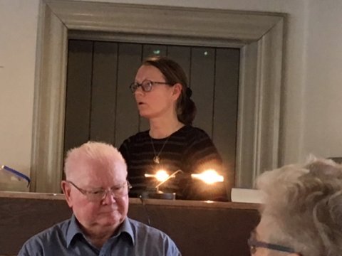 Og vi var 20, der fik et godt indblik i kirke- og kulturmedarbejder Lisbet Knudsen's arbejde ved Grundtvigskirken i Esbjerg, hvor hun selv har opbygget/formet stillingen siden 1997. Der er rigtig mange tilbud i det store bysogn og meget at holde styr på, men Lisbet's arbejdsglæde og engagement var helt tydeligt for os alle.