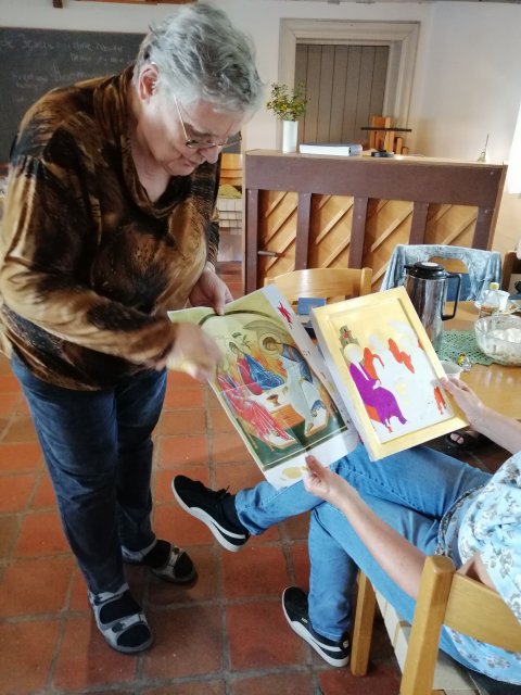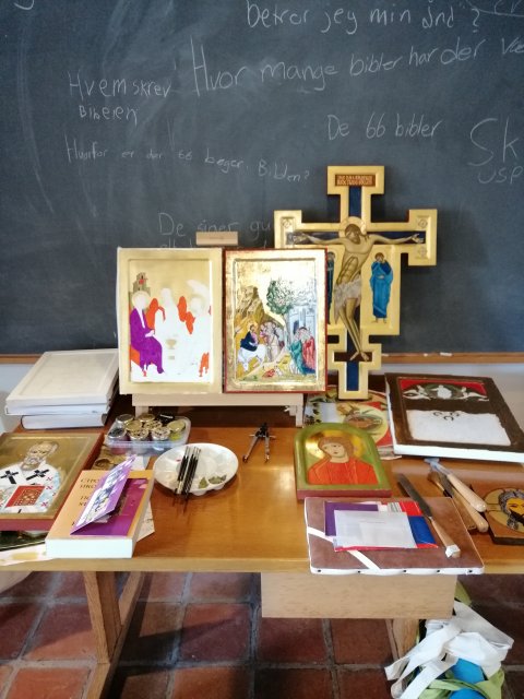 Emnet var " fremstilling af ikoner" v/ Ragna Weidinger. Det var en spændende eftermiddag, hvor de fremmødte fik en fin forklaring på en spændende hobby.