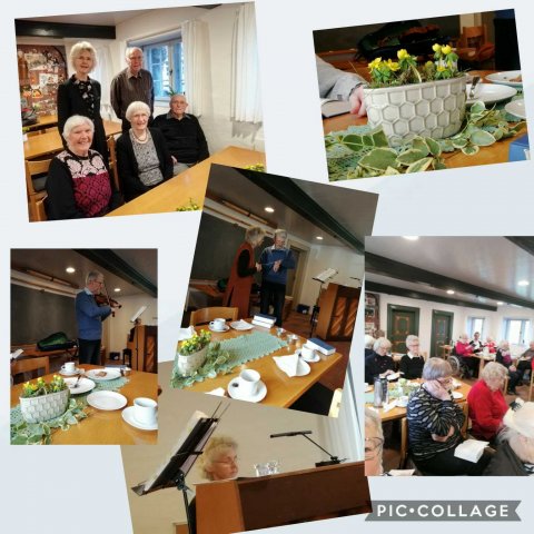 Den 30. APRIL havde Elin ordet: "Derfra min verden går" - fællessang og fortælling om personer og steder fra hendes opvækst. Konfirmandstuen var fyldt og al den gode hjemmebag fik ben at gå på - og det blev igen en dejlig eftermiddag med fortælling og en masse sang.